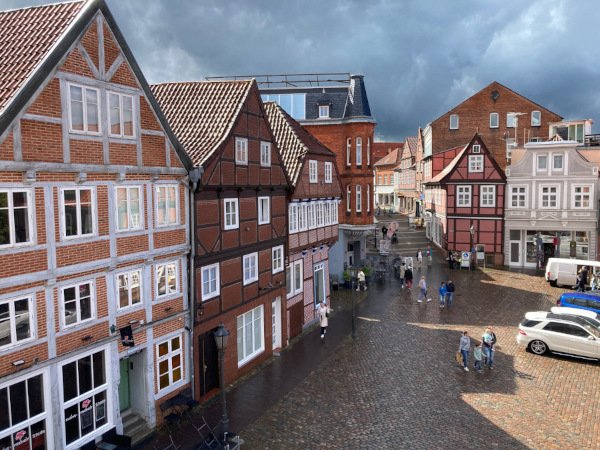View from our hotel: the main square in the northern town of Stade